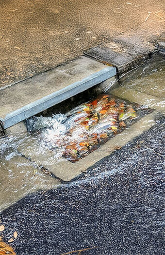 Emergency clearing of surface drains, strip grates and yard drains to eliminate water pooling in yards, driveways, or near building foundations during storms.
